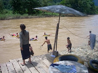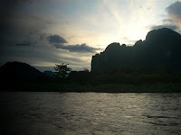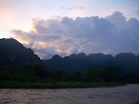 A must do in Vang Vieng is a lazy ride down the local river on a tractor tyre inner tube. A tuk tuk drops you about 4 kilometres up the river. In the rainy season it takes about one hour to make the trip, but there are many distractions.