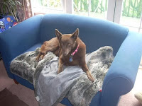 Max announced the start of her interview today with a series of low throbbing growls. Her growls grew in volume and throatiness until she was allowed inside. After jumping about and racing around frantically she ensconced herself on a couch. At this point I felt it opportune to take a nice photo of Max.
