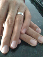 Luckily the ring was not particularly expensive. We wisely spent our wedding savings on entertaining our guests and feeding them. So whilst there was an emotional attachment, the finnacial one was not great. Therefore it is with great pleasure that I can now present to you my new official wedding ring, worn by my hand model.