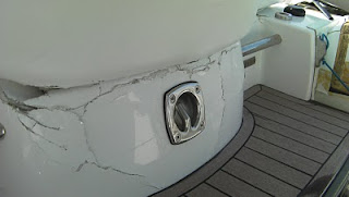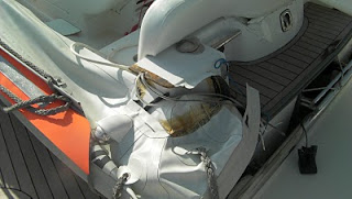 The tender had then been pushed backwards and had come to a stop wedged under the crane. The jet engine was damaged and the tender was full of water causing all of the safety equipment to swim. It was heartening to know the hydrostatic release on the remaining life jacket worked.