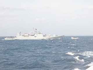 We missed our Chinese convoy and were going to have to travel through pirate alley without military support. It is good luck that some rope dangling down from out battle with King Neptune was enough bait to solicit some advice from an Indian cargo ship called Guru Govind Singh. After listening to sea bored Philippinos babble on VHF channel 16 for 3 days it was wonderful to hear an Indian accent speaking good English. The Captain was kind enough to send us details on the Indian convoy.