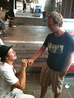 We had a very good impromptu party on the way back from the internet cafe at the base of some stairs. My JBL speaker system got a very good workout on the holiday. We went through three sets of batteries. It was here that Chris started chewing on straw. Something that suits him very well.