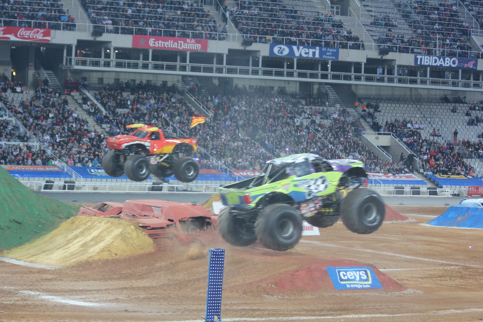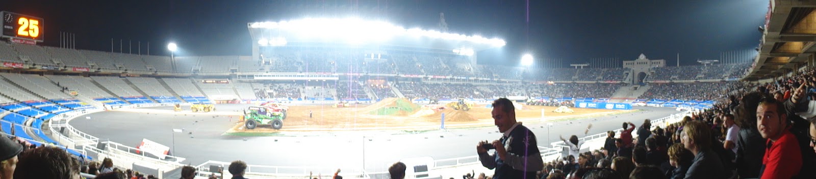 Somewhere in my childhood I developed a taste for monster trucks, probably around when I used to play with radio controlled cars. I have had a latent hankering to see a real life monster truck for at least 20 years. Seeing Monster Trucks in the Olympic Stadium in Barcelona was a dream come true. There was a reasonable posse from our boat who went to have a look. One of the Engineers took his mum who had come to visit. Another one of the Engineers took his girlfriend he had not seen for a month. Engineers always on the look out for horsepower.
