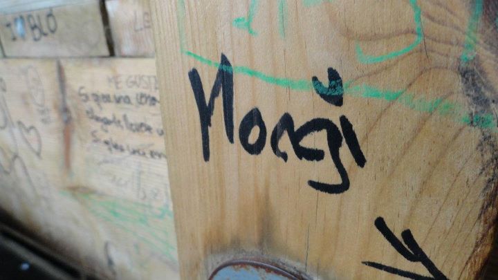 I also noticed some very latin graffiti. These two pieces actually are two nicknames given to different crew members by the Mexican mafia.