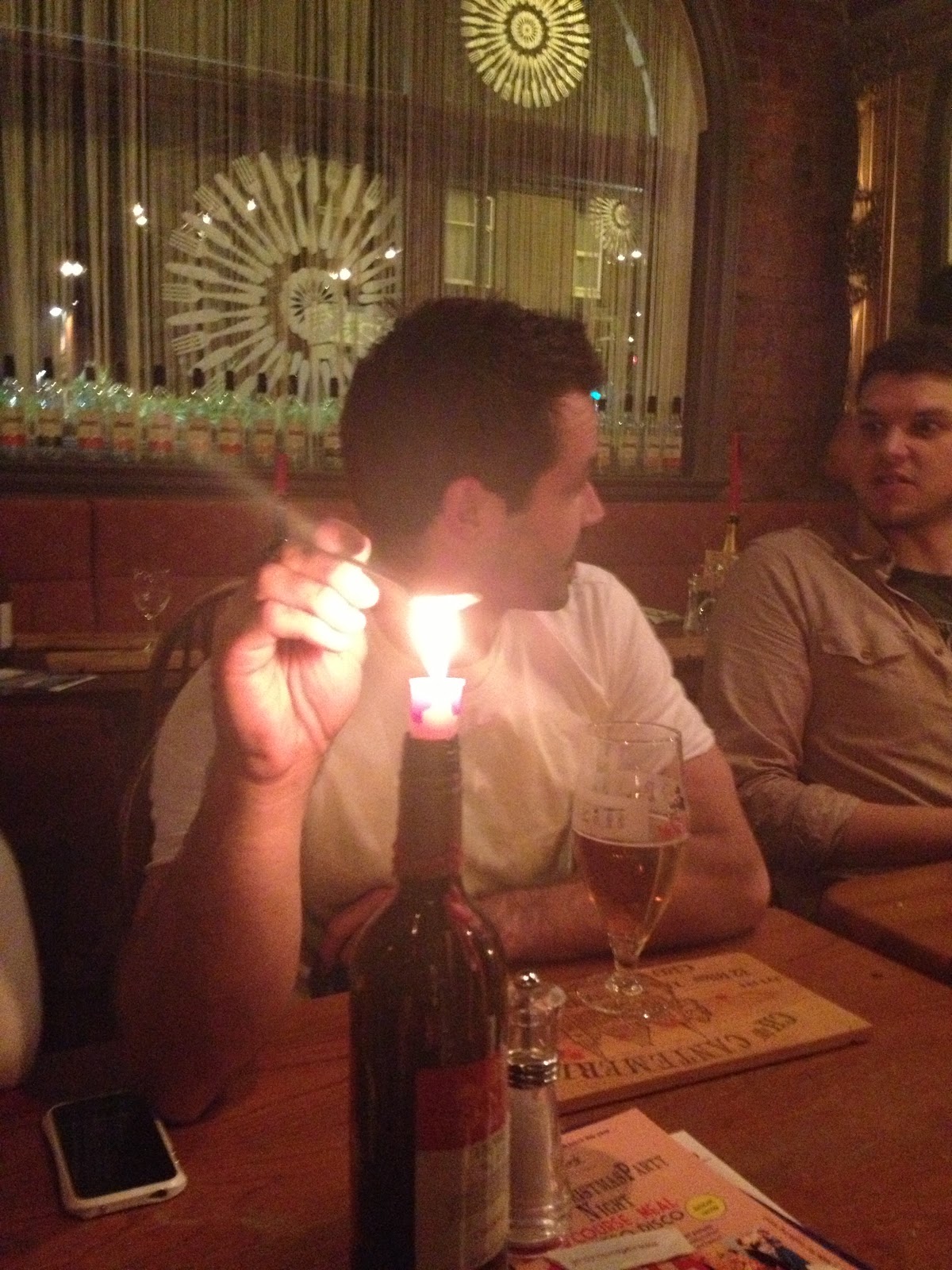 At some point Brent decided to start cooking a spoon with a candle. The candle resisted ssshing.