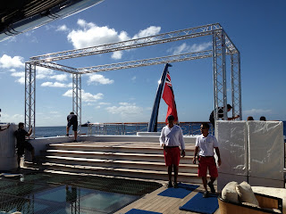 Six days out from New Years we got bundled with the task of creating a party out of thin air with the same setup as we had during our Mediterranean season. What the powers that be did not understand is that the parties we had during our Med season were setup by a dedicated team of roadies who followed on an 80m support boat. Not to be discouraged the technical department and our very capable Purser moved a few mountains to accomplish the impossible.