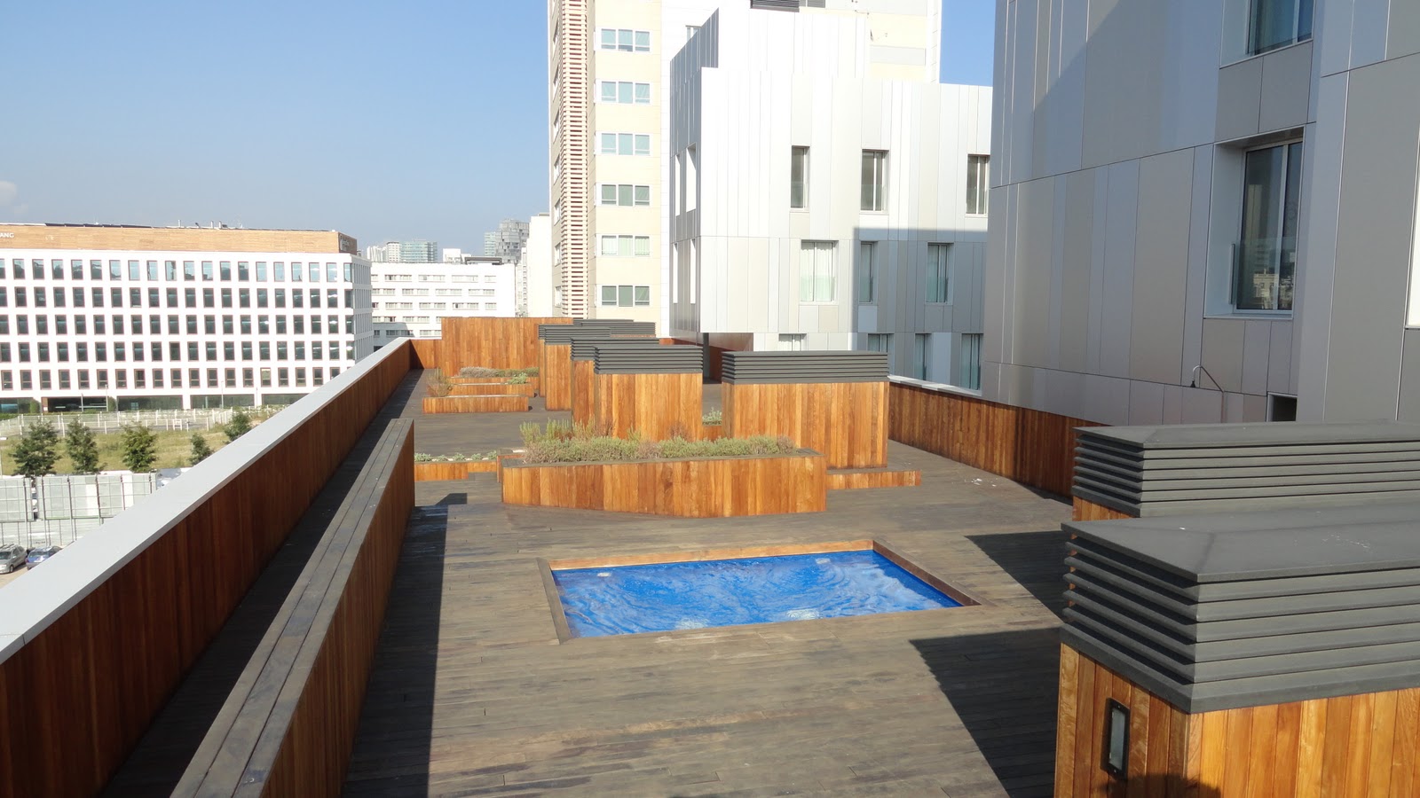 Knowing I will have a home of sorts for a few months is very satisfying. We have a large sound system which has already been connected to the ironing board and although my room is quite small it is not a cabin! A nice surprise yesterday was finding out we have a rooftop complete with nice views, a small pool and jacuzzi.